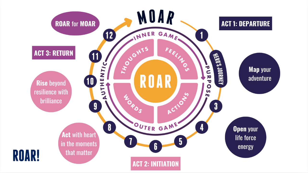 💙 ROAR! is my BLUEPRINT for how I strive to live my best life every day – on PURPOSE, in my POWER and with the COURAGE to speak my truth. It is also a four-step process – for having fearless conversations – with myself and others. 💙